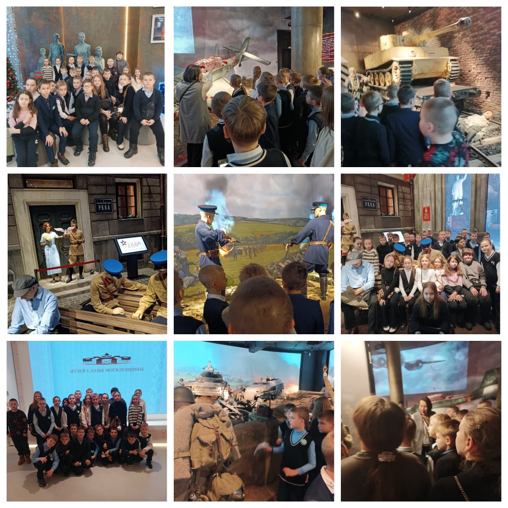 26 ноября 4 «А» класс посетил музей Славы. Дети окунулись в прошлое нашего города. Увидели каким красивым и таким родным он был до войны. Но мирную жизнь горожан прервала войны. Они увидели как жилось нашим могилевчанам в годы войны, как они сражались за мирное будущее нашей страны. Дети были воодушевлены рассказом экскурсовода. В их памяти останется навсегда оборона Могилёва и подвиг воинов, которые погибли защищая наш город.
