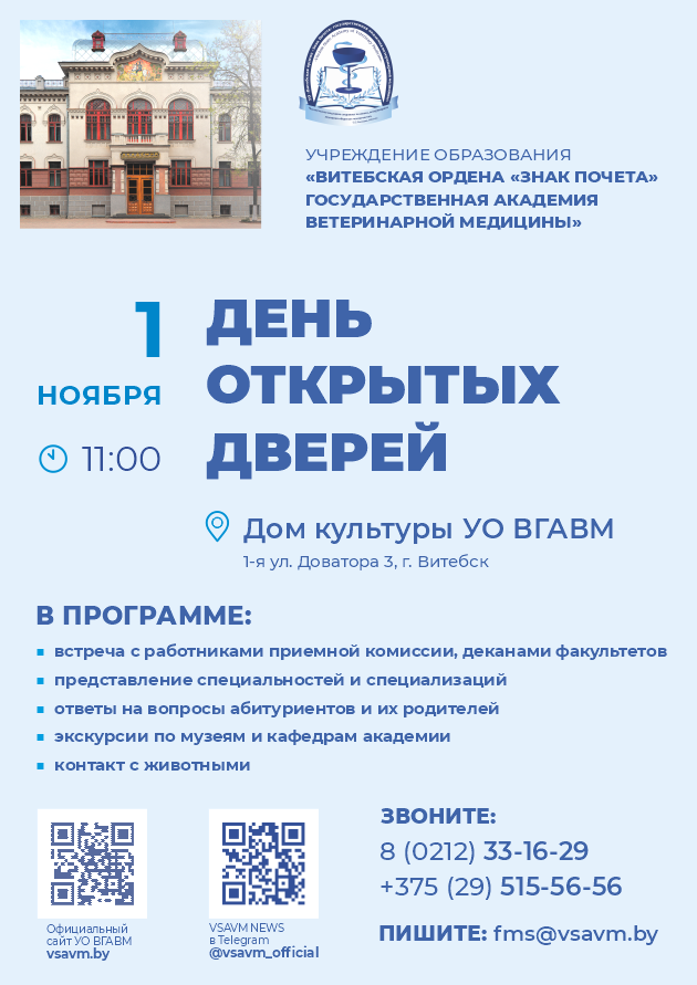 Главная страница > Новости > День открытых дверей в УО «Витебская ордена «Знак Почета» государственная академия ветеринарной медицины»