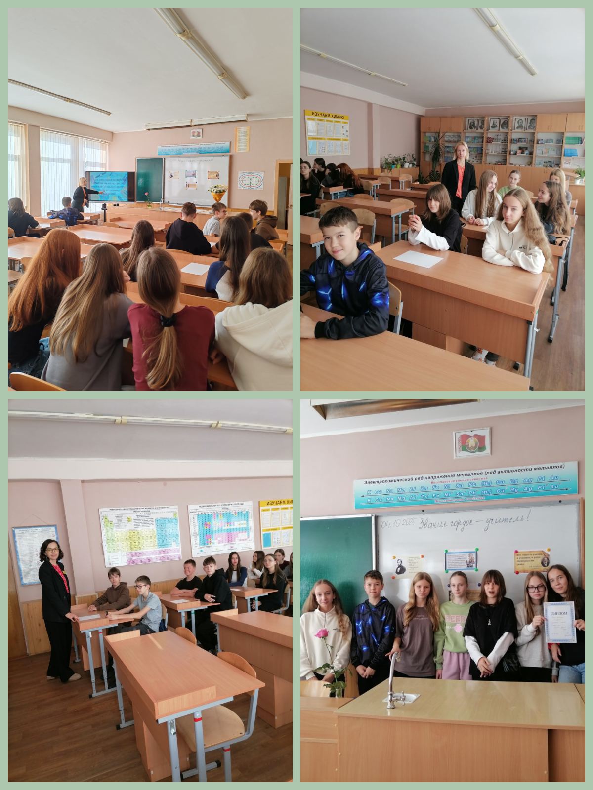 В субботу 04.10, в преддверии праздника День учителя, для учащихся 8 классов прошло мероприятие «Звание гордое — учитель.» Программа была очень насыщенная. Были исторические вопросы про школу, занимательные вопросы по школьным предметам. Шуточные задания «Какой предмет ведёт этот учитель». И конечно звучали поздравления и стихи посвященные любимым учителям.