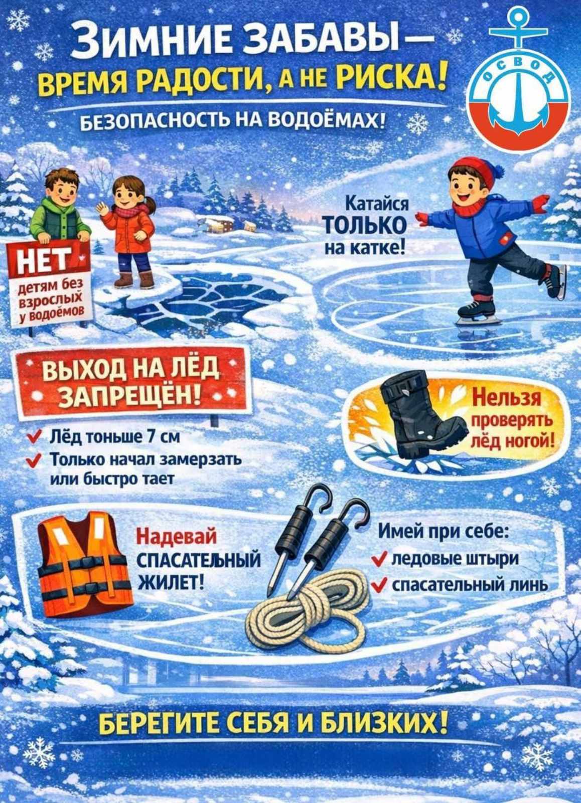 ❄️☃️Зимние забавы — время радости, а не риска! ОСВОД напоминает о безопасности на водоёмах