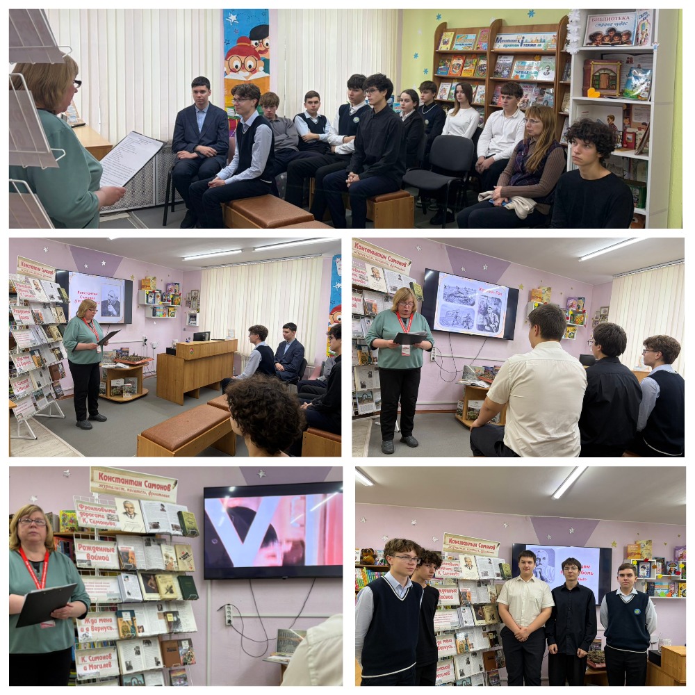 Литературный час «Сердцем принял боль войны», посвященный журналисту, писателю, фронтовику Константину Симонову, был проведен в библиотеке 9 города Могилева для учащихся 11 «Б» класса.