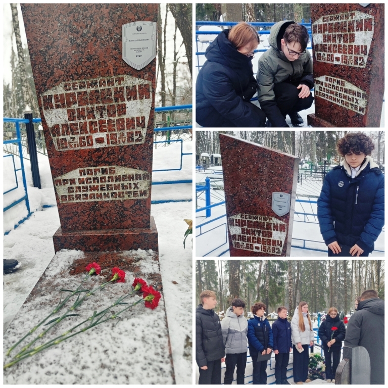 Учащиеся, с серьезностью и уважением, почтили память всех павших минутой молчания. Особые слова благодарности и низкий поклон были адресованы нашему земляку, воину-интернационалисту В.А. Курбацкому.