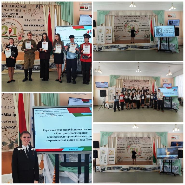 Поздравляем Камзолову Алину, учащуюся 10 «Б» класса, с заслуженным вторым местом на городском этапе республиканского конкурса «Я патриот своей страны», который проходил в рамках культурно-образовательной патриотической акции «Поезд Памяти»!