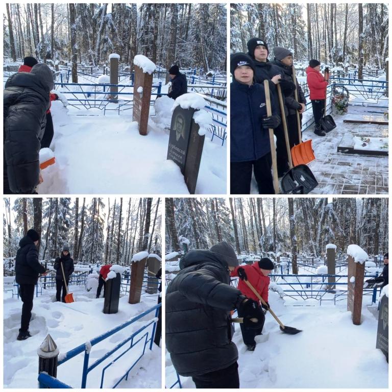 Учащиеся нашей школы приняли участие в благородной акции – уборке снега на воинских захоронениях