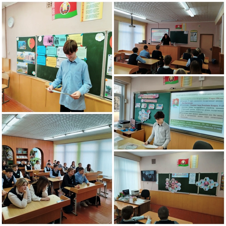 13 марта ученики нашей школы приняли участие в едином уроке, посвященном главному закону страны. В ходе занятия ребята обсудили, что значит быть гражданином, поговорили о единстве прав и обязанностей, а также о ценностях, которые лежат в основе белорусского общества.