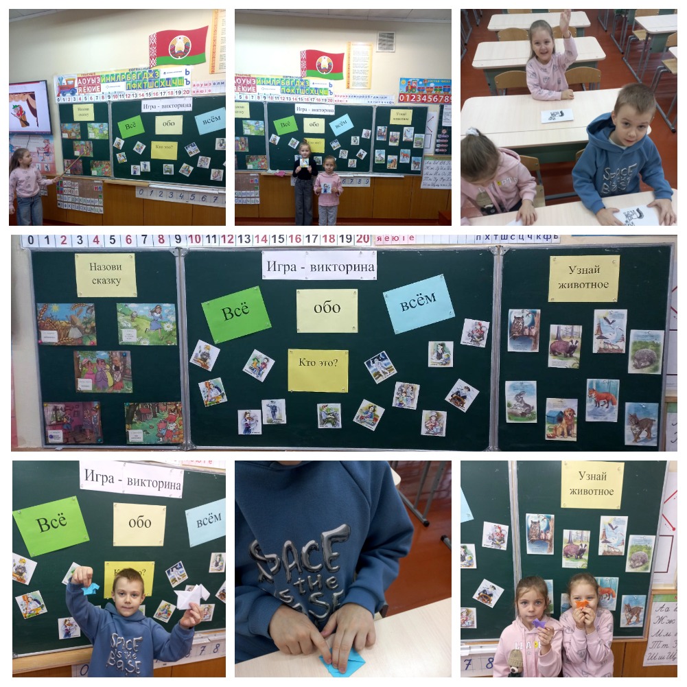 Ребята с интересом отвечали на вопросы викторины, угадывали задуманные профессии, определяли непонятное животное, составленное из разных частей тел других животных, учились складывать фигурки животных в технике оригами, отгадывать по иллюстрациям названия сказок и выполняли ещё много интересных заданий.